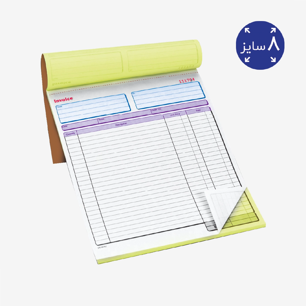 فاکتور سه نسخهای با صحافی سرچسب ، برای افرادی طراحی شده که به دنبال ظاهری مرتب، سبک و در عین حال کاربردی در فاکتورهای خود هستند. اتصال برگهها با چسب مخصوص در لبه بالا، امکان ورق زدن آسان و جداسازی تمیز هر نسخه را فراهم میکند، بدون آنکه اثری از سوراخ یا منگنه باقی بماند. این ویژگی، فاکتور را برای نگهداری در پوشهها، زونکنها یا کشوهای بایگانی بسیار مناسب میسازد.